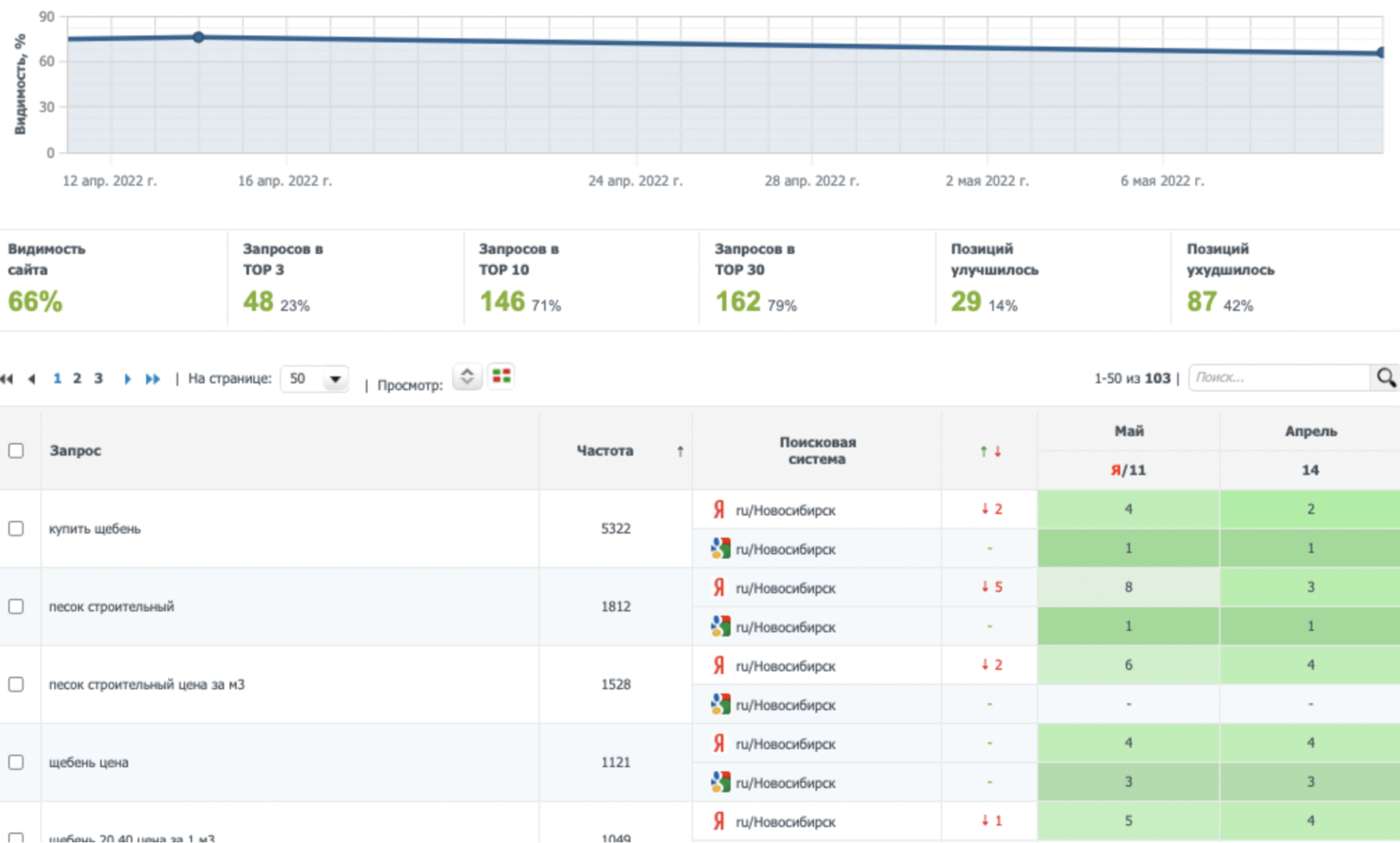 Тематика: продажа щебня, песка Регион продвижения: Новосибирск Трафик на момент старта: :( Бюджет: 30 000 руб/месяц Срок исполнения: Январь 2020 по настоящее время
